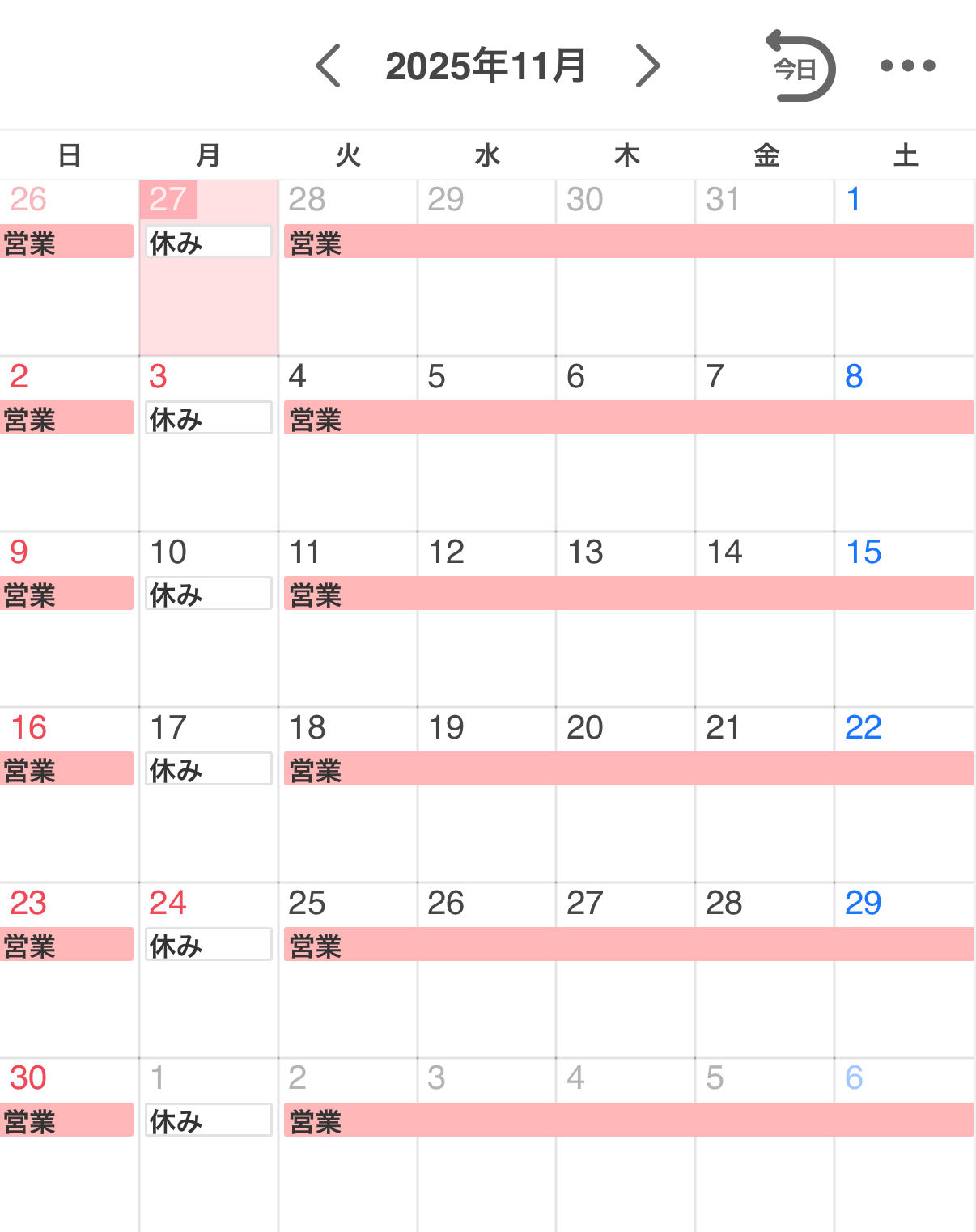 基本 月曜日休み